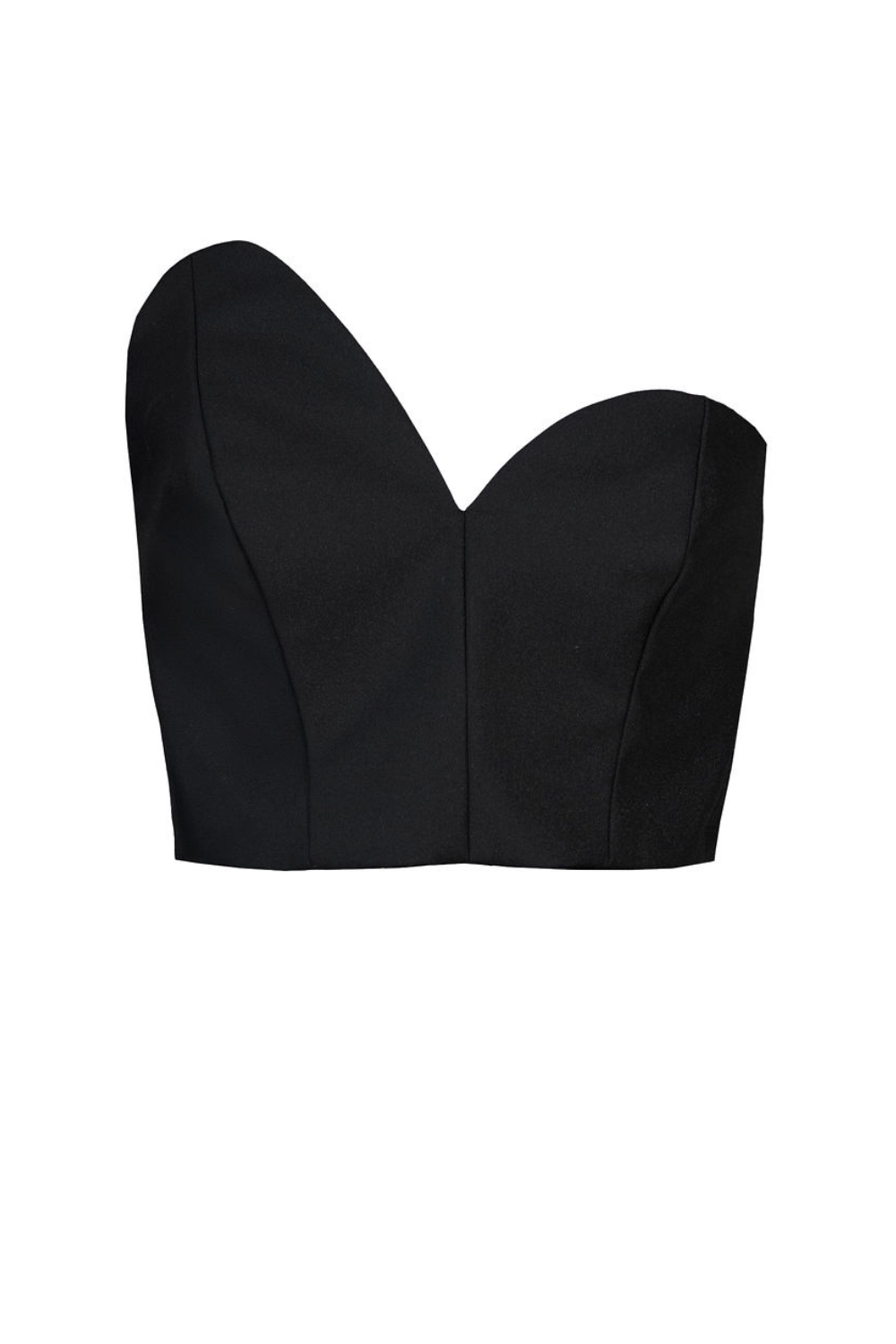 Cropped em alfaiataria lisa. Modelo com decote assimétrico. Todo forrado com fecho em zíper.