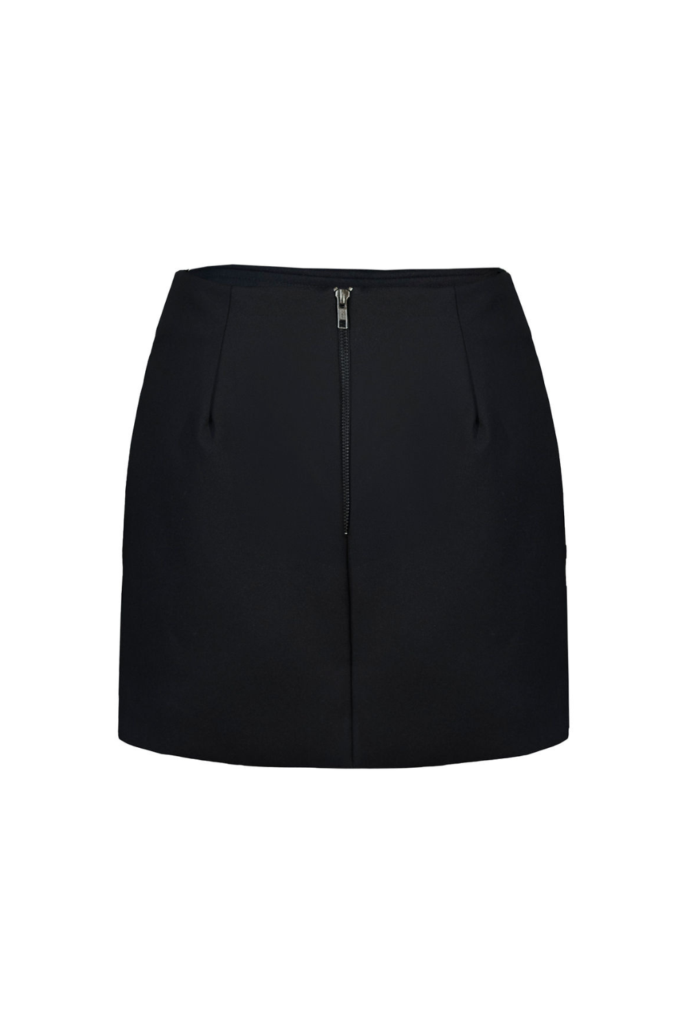 Saia mini em alfaiataria lisa. Modelagem reta, forrada com leve estrutura. Modelo possui fecho em zíper.